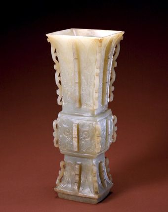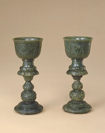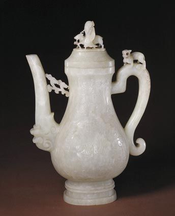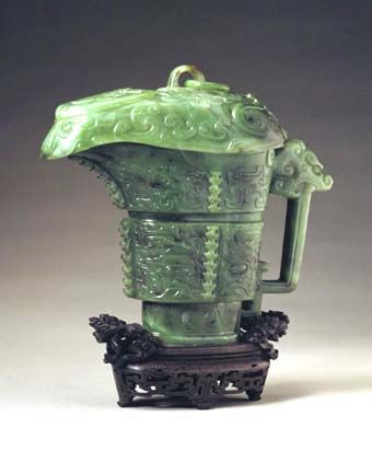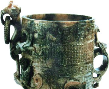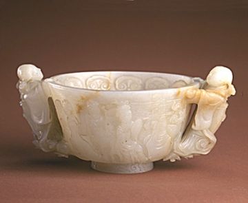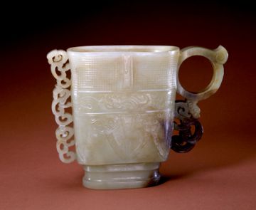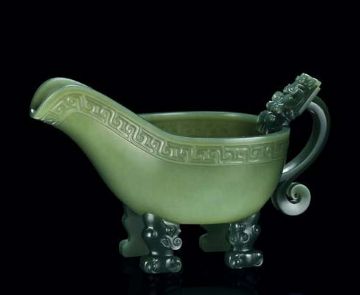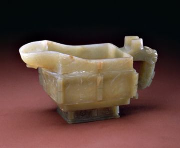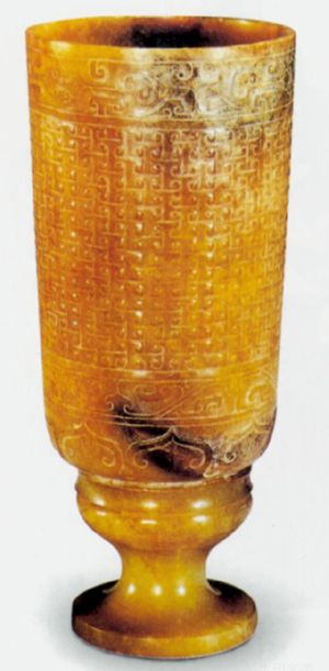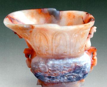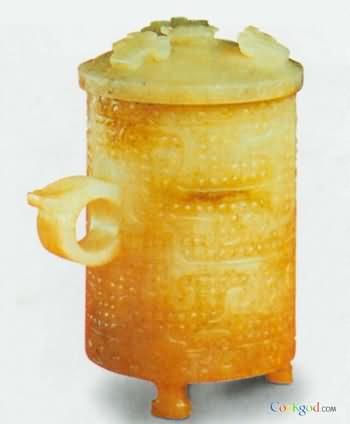 随着酒的酿造成功,喝酒器具也随之应运而生,最早的酒具是陶质酒器。到了战国时期,饮酒器得到很大发展,主要包括:流行于商周时期的爵 、胱 、角 、觚 、脚。流行于西周至春秋时期的羽肠,以及流行于战国秦汉时期的卮,此外还有杯、锹、碗、盏等;温器主要有益 、髻、撙、单、铛、爵、炉、注子、注经等;斟灌器主要有杯、矾、注子、执壶等;盛储器主要有缸、笼、尊、罂、葫、缶、彝、壶、白、腮、纺、钟、协、瓶、蟾等。玉雕酒器产生时间很早,大多认为产生于商代,到明清时期达到鼎盛,器形有仿制青铜器的爵 、胱 、角 、觚 、脚等,还有匠人们别出心裁的一些精美而富有情调的作品。