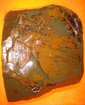 黄石砚因产于河南方城县黄石山而得名,宋亡后销声匿迹数百年,上世纪八十年代又重新被发现开采。1990年,中国书画家协会名誉主席启功先生对黄石砚给以高度评价,并亲笔题写“中国黄石砚”。1993年10月,中国黄石砚荣获中国国际书画博览会金奖。其具有“石质如玉,其声如罄,其色多彩,发墨如脂”的特点。