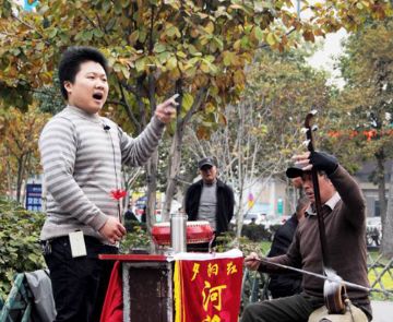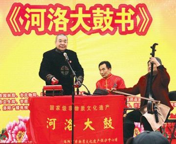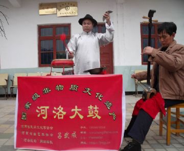 河洛大鼓是起源于清末民初,在洛阳琴书的基础上发展起来的一种深受当地人民喜爱的曲艺形式。洛阳琴书旧称“琴音”,早期的伴唱乐器是我国传统的七弦古琴。“琴音”在官宦、商绅和文人之间传唱,词曲典雅,流入民间后,改称“琴书”,其琴也改为扬琴。洛阳琴书早期演唱方式多为闭目坐唱,其唱腔委婉细腻,字少腔多,节奏缓慢拖沓,其演唱书目也多为才子佳人悲欢离合的中、短篇故事。19世纪初,河洛大鼓由洛阳琴书和“单大鼓”结合,并吸收了河南坠子的一些曲调而形成。其早期被人们称为“大鼓书”、“鼓碰弦”、“钢板书”。20世纪50年代初定名为河洛大鼓。唱腔属“板腔体”,板式丰富,方便演说各类书目。在传统节目中,以公案书、武侠书和袍带书等长篇书目为多。