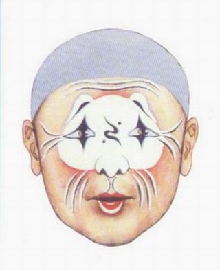 丑角脸又称“小花脸”、“三花脸”。这种脸谱的显著特点是在面部鼻梁中心画一块白色,形状如豆腐块、桃形、枣花形、腰子形、菊花形等,用漫画的手法表现人物的喜剧特征。这种脸谱大多表现生活在社会底层的人物、民间义士等,脸谱谱式机敏、滑稽。类型上有文丑、武丑、老丑、恶丑、小丑之分,所戴髯口也多种多样,有“一戮”、“二挑”、“丑三”、“四喜”、“五撮”、“八字”、“吊搭”等多种。