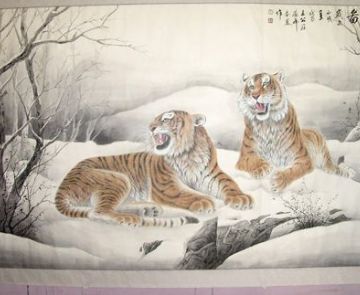 王公庄作品既有王者之气,又有人性化的人文意韵,形成了威猛与柔静并重,浓艳与素雅并存,造型和谐,构图自然,撕毛独特,神韵飘逸,乡土气息浓郁的"民权虎"风格。