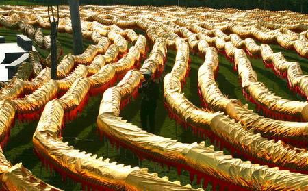洛阳的舞龙,历史悠久,在龙文化中独具一格。洛阳龙灯始于汉代,当时表演共分赤、黑、青、白、黄“五色龙”。如今,洛阳舞龙民俗依然盛行,每到节日庆典,随着哨声,龙灯上下翻飞,一节起,一节落 ,一节仰,一节俯,如蛟龙出海,摇头摆尾,尽情遨游。