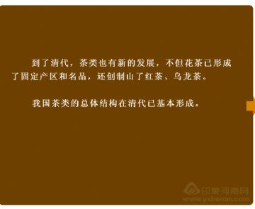 茶在清代已经有了新的发展,不但花茶已形成了固定产区和名品,还创制山了红茶、乌龙茶。我国茶类的总体结构在清代已基本形成。