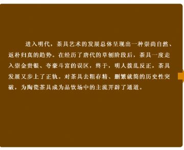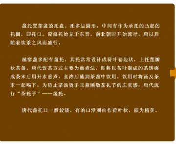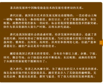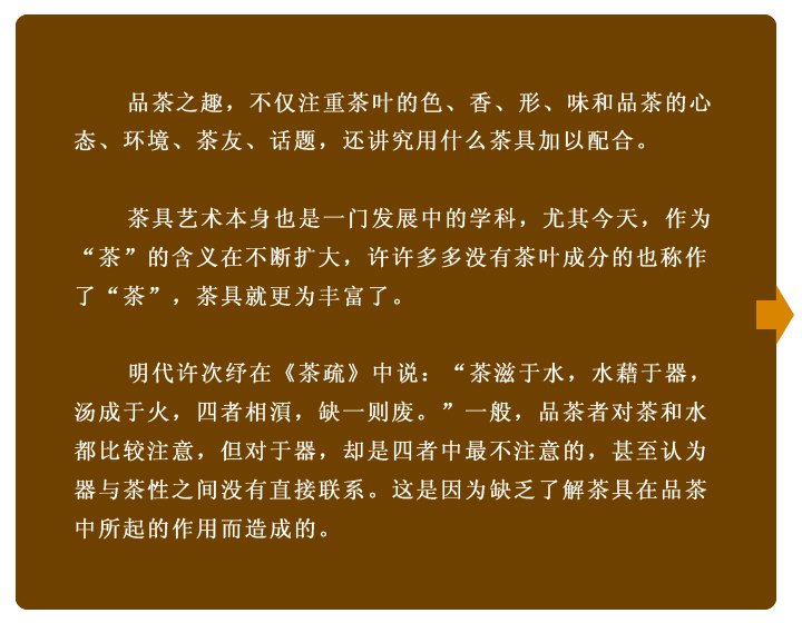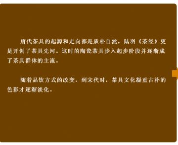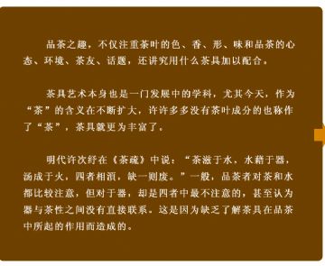 “茶滋于水,水精于器,汤成于火,四者相顾,缺一则废”,没有茶具,茶事活动就无法进行,茶艺也就因它而“缺一则废”,可见茶具在品茶艺术中的重要地位。