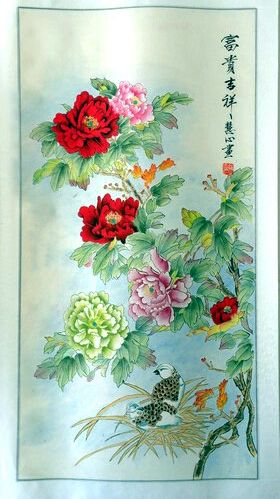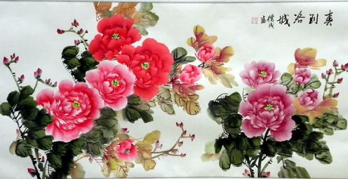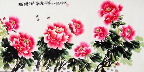 平乐牡丹画起源于中国牡丹画第一村——洛阳平乐。“平乐牡丹画”形成了以中国传统写意绘画技法为主,饰以醇厚色彩,花朵雍容艳丽,神韵犹存,枝叶生动洒脱,秀而不滞,远望有气势,近看透笔墨的特色。置于厅堂现富贵豪放,挂于书房见清雅祥和。