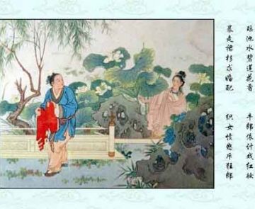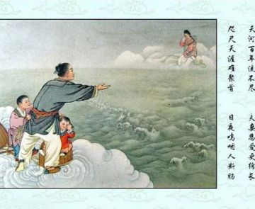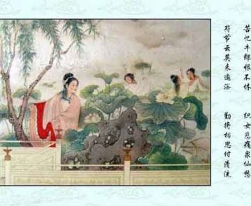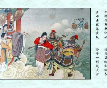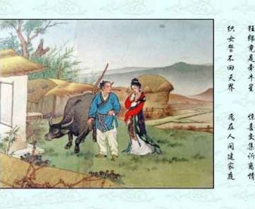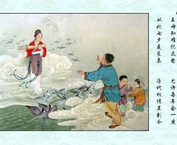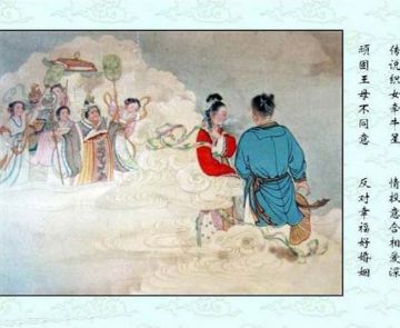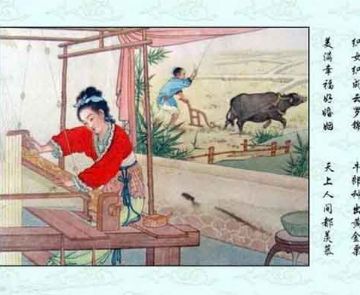 牛郎与织女的传说出现了不同的版本,这里展示的是牛郎织女的故事连环画。