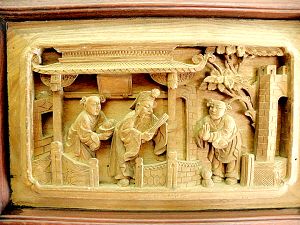 孝”是中国古代重要的伦理思想之一,元代郭居敬辑录古代24个孝子故事,编成《二十四孝》,成为宣传孝道的通俗读物。后来,又有人刊行《二十四孝图诗》、《女二十四孝图》等,流传甚广。长时间以来,这些故事衍生出很多的文艺作品,在传统的木雕、砖雕、浮雕上,会常见到这种题材的图案。