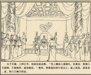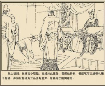 三口御铡故事讲的是刑部堂官员包拯为翻昝文祥冤案上疏任宗皇帝。仁宗极赏识这位有胆识的年轻小官吏包拯,封他开封府尹,赐他三道御札。包拯借机造了三口御铡,制定御刑,辅佐仁宗,治理大宋国朝。