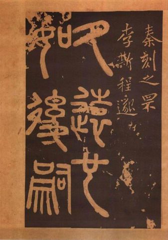 李斯,不仅是秦代著名的政治家,也是中国书法史上有记载的第一个创新者。他以“小篆”为标准,整理文字,不仅对我国文字的统一做出了贡献,还对汉字书法的发展起了先驱的作用。《峄山石刻》、《泰山石刻》、《琅琊石刻》、《会稽石刻》即为李斯所书。尤其是后世流传下来的《峄山石刻》,可以看出李斯的书法运笔坚劲流畅,线条圆润饱满,结构匀称协调,点画粗细规整,字字飞动,有如一幅优美的图画。李斯的小篆书法可谓空前绝后,历代书法家都给予了极高的评价。