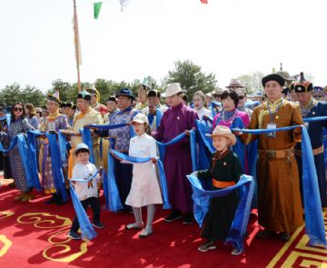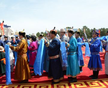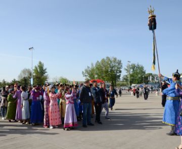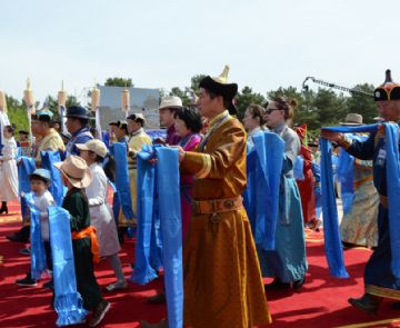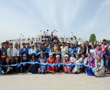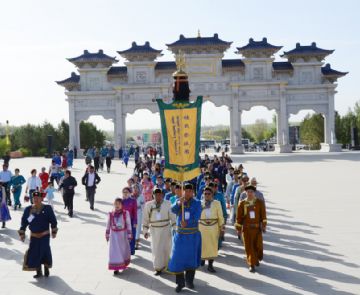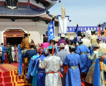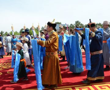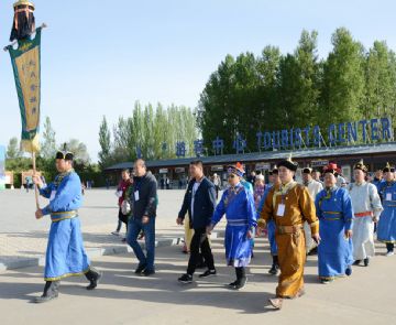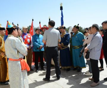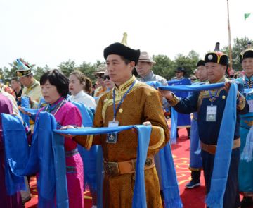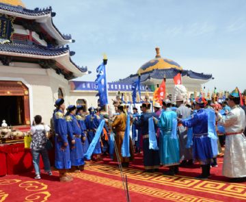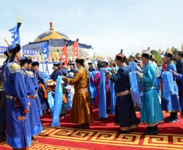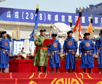 碧空如洗,牧野茫茫;圣地今朝,天地人和。5月6日(农历三月二十一日),“戊戌(2018)年成吉思汗查干苏鲁克大典”在鄂尔多斯市伊金霍洛旗成吉思汗陵隆重举行。鄂尔多斯市有关领导、世界非物质文化遗产特邀专家和自治区有关专家代表团、有关省区和友邻地区代表团、自治区有关盟市代表团、企业界代表团、鄂尔多斯代表团、各族各界代表团以及来自各地的10余万祭祀群众参加了大典仪式。