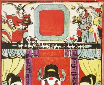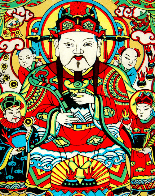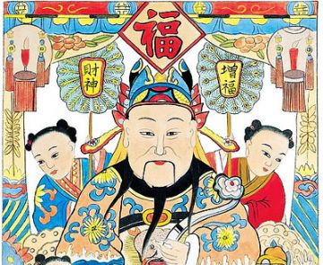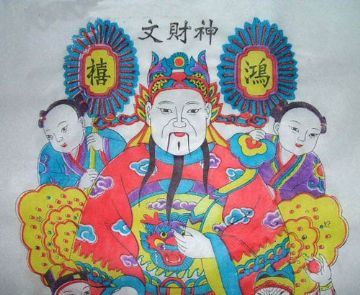 各地年画中的文财神比干形象虽略有不同,但主要轮廓大致相同,都是为文官打扮,头戴宰相纱帽,五绺长须,手捧如意,身着蟒袍,足登元宝。文财神的打扮与天官相似,二者的区别就是:天官神志慈祥,笑容满面;而文财神比干的神像面目严肃,脸庞清烁。旧时财神爷有文武之分,崇文尚武的人家各有所司。尚文的人家供奉文财神爷,尚武的人家敬祀武财神爷,文武之道虽不同,却都各有财发。