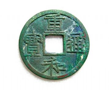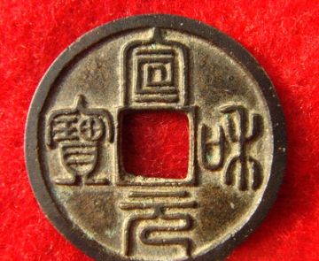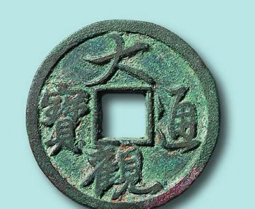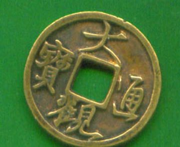 大观通宝铸造于大观年间,质地有铜、铁,钱文为宋徽宗亲书瘦金体“大观通宝”,也有少量行书字体。