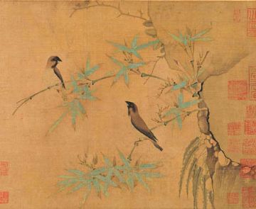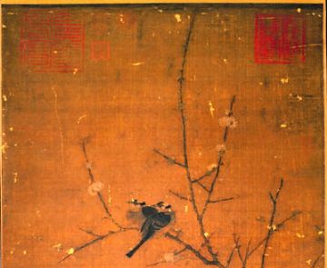 宋徽宗绘画作品大多具有较高的艺术成就,以花鸟画成就最高。他的花鸟画用笔精细入微,画法独辟蹊径,金墨绘羽,生漆点睛,活灵活现,意境天成,开一代院体花鸟画之大宗,为众史不能。