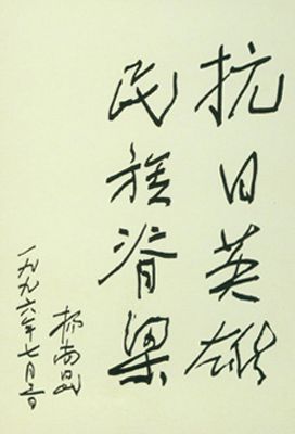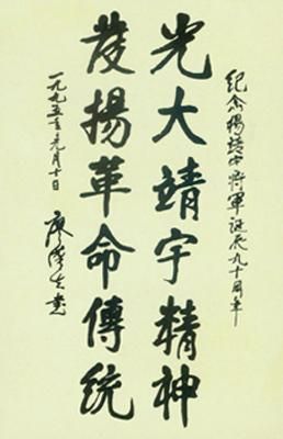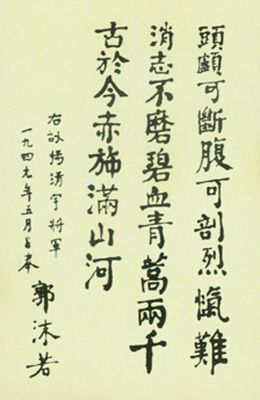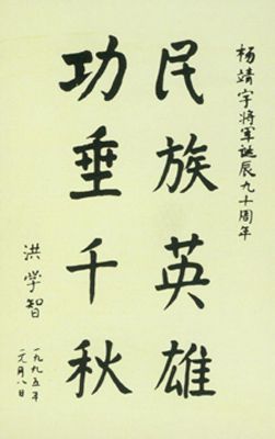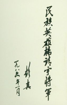 关于杨靖宇将军的题词很多,最能体现将军精神的还是郭沫若的诗句:“头颅可断腹可剖,烈忾难消志不磨,碧血青蒿两千古,于今赤旗满山河。”