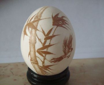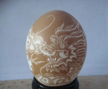 蛋雕作品种类繁多,有人物肖像、花鸟鱼虫、京剧脸谱、诗文字画,主辅相衬十分得当,惟妙惟肖斗艳争芳。