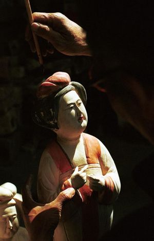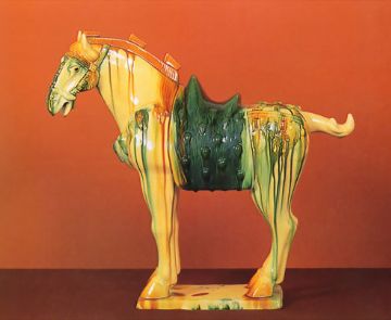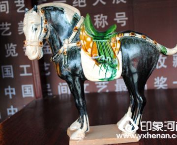 唐三彩是唐代生产的一种低温釉陶器,釉彩有黄、绿、白、褐、蓝、黑等色,而以黄、绿、白三色为主,所以人们习惯称之为“唐三彩”;因唐三彩最早、最多出土于洛阳,亦有“洛阳唐三彩”之称。