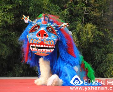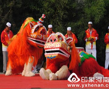 沈沈丘回族文狮舞又名“文狮子”,它有狮子舞、麒麟舞、独角虎舞组成。流传于周口市沈丘县槐店回族镇—带,属豫东平原少数民族特有的民间舞蹈,具有原生态的质朴美,现全国仅存沈丘一处,在每年的春节、元宵节演出,有稀有性、年节习俗依存性、多源性、共存性、传奇性、摹拟性、导乐性等特征。图为沈丘文狮舞在2013中秋文化节上的表演。