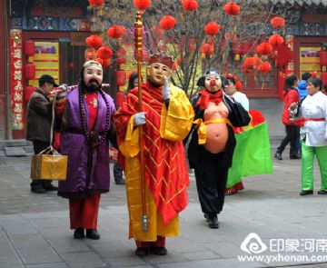 印象河南网2月22日讯:为弘扬民俗文化,丰富群众节日生活,由郑州市文物局主办,郑州市商城遗址保护管理处承办的“郑州城隍庙2013年新春文化庙会活动”将从2013年2月10日(农历正月初一)到2月25日(农历正月十六)举行。活动内容有民间文艺表演欢庆锣鼓走旱船、空竹表演、高跷舞、耍猴戏、变脸等和民间手艺表演吹糖人、捏面人,剪纸、泥塑等民间特色文化活动。使游客享受了一场丰富多彩的民间传统民俗文化的盛宴,吸引游客体会地道的河南民间文化艺术。