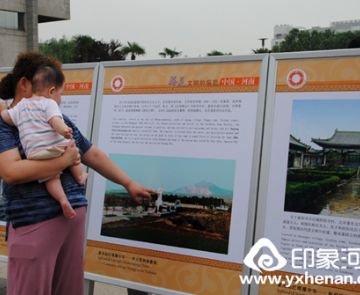 6月8日上午10时许,河南博物院主展馆广场第八个中国“文化遗产日”河南省主题活动拉开了序幕。在主题活动现场,河南博物院推出“华夏文明的摇篮中国河南”文物图片展,精选了70个版面,图文并茂,全面展现华夏文明起源、发展和演变的辉煌历程。