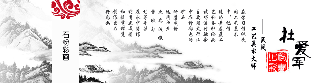 杜爱军,男,汉族,1972年3月出生,大专文化,籍贯河南省新乡市原阳县,现在新乡市杜爱军石粉彩画工作室工作。中国民间文艺家协会会员、新乡市民间文艺家协会副秘书长、河南省民间工艺美术大师。自幼酷爱民间工艺美术,18岁就拜师学习雕刻,20岁到北京工艺美术厂进修学习,21岁到河南师范大学美术系学习。在学习传统民间工艺美术中,把传统的景泰蓝工艺和各种绘画技巧进行融合,主要用太行山中各种彩色的矿石,研磨... 详细>>>