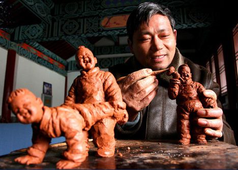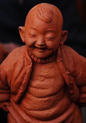 赵恩民经多年刻苦钻研,挖掘出塑空绝技,作品既轻又省泥,还结实不裂纹,更富艺术表现,其人物形象千姿百态,憨态可掬,趣味盎然,而头手可自由转动、调换,细而不腻,粗而不糙,在吸取西方艺术强调光线运用的基...