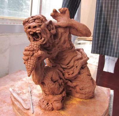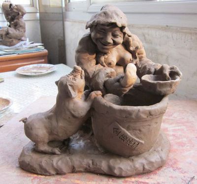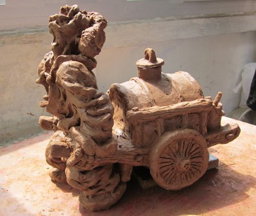 其作品特点:风格粗犷豪放,个性张扬泼辣,寓生活俚俗于艺术夸张之中。通过泥塑苍桑的艺术手法表达生命旺盛的活力。