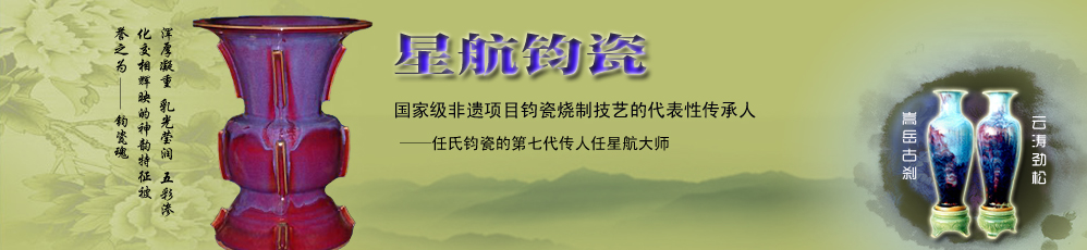 星航钧窑是一家专门研究、生产钧瓷的单位。由著名陶瓷工程师、钧瓷恢复的奠基人和主要领导者任坚老先生次子,现任中国古陶瓷委员会理事,中国古陶瓷工艺美术大师、禹州市钧瓷学会会长,中国古陶瓷学会会员任星航先生任董事长。星航美林钧瓷,是任星航与韩美林大师联合推出的艺术珍品。星航钧窑钧瓷在钧瓷界独家采用煤与液化气混和烧制是的煅烧新技术,集煤烧与气烧的优势于一体,使作品在浩瀚的钧瓷艺术品中独领... 详细>>>