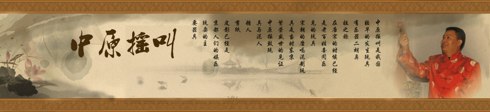 摇叫是我国较早的发声玩具,在唐宋的时候已经是老百姓喜闻乐见的玩具,宋朝的磨喝泥制玩具是当时东京繁荣盛世的见证,中原“摇叫”玩具与泥人、糖人、剪纸、皮影已经是京都人们的娱乐、玩耍的主要器具。