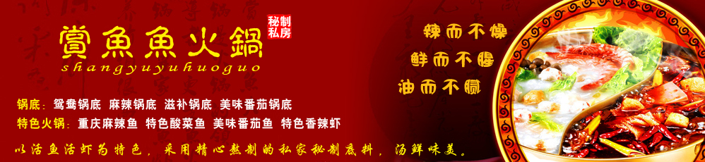 赏鱼鱼火锅是火锅的领导者,更是鱼火锅的专家。鱼虾的营养价值很高,含有丰富的蛋白质和人体所需的多种维生素、氨基酸及矿物质。具有低脂肪、高营养,口味好,易于消化吸收的特点。本店以活鱼活虾为特色,采用精心熬制的私家秘制底料,汤鲜味美。本店的鱼火锅鲜、香、爽口,具有辣而不燥,鲜而不腥,油而不腻的特点,让您香在嘴里,美在心里。