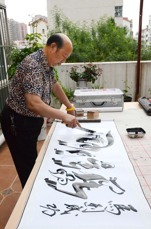 他多年潜心研究,运用刀的光滑度独创的新书种,在中国和世界都属首创,他的刀书“黄河”、“云山”、“泰山”、“华山”等作品,曾在国际大赛中脱颖而出,名列榜首,荣获金奖。
