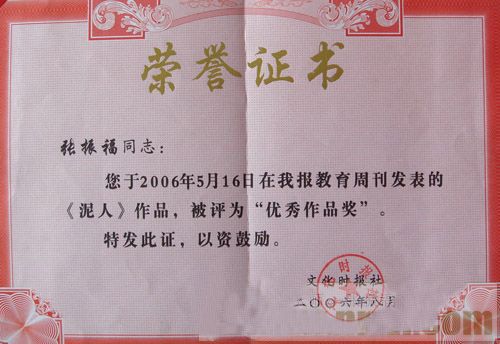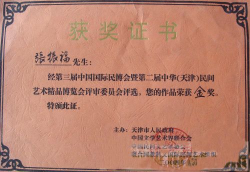 - 2013-3-26· 泥人张振福在第六届民间工艺美术博览会上荣获金奖
