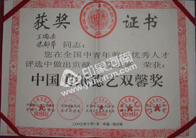 王瑞杰,男,汉族,原名王世兴,笔名:永纯、玉岩,1939年出生于黑龙江省五常县,中国民主建国会会员,1960年毕业于哈尔滨体育学院,曾任职于黑龙江讷河体委、郑州华北水利水电学院、郑州黄河科技学院。现为中国散文学会会员;河南省作家协会会员、民间艺术家协会会员;中华民促会剪纸艺术委员会会员等。由于从小爱好文学艺术,在1958年便发表了中篇小说《社长的女儿》并获钢人征文佳作奖。1994年到河南郑州和有着共同爱好的张郁萍女士结为连理,夫妇分别或合作发表了文学和剪纸作品,其作品注重弘扬真善美,将传统和创新相结合,颇受专家和观者好评。获奖作品颇丰。如:散文《桥头遇险记》、《我和大雪小雪》获2001、2002中国作家世纪论坛优秀作品二等奖;合作小说《奇缘》、《唐婉之死》获一等奖。其剪纸作品《龙凤戏》赴意大利展出并获“达芬奇小金人奖”金奖;剪纸代表作有《国色天香》、《迎祖国统一》、《北京奥运图》、《千手观音》、《牡丹仙子》、《孔圣人》、《民族英雄》、《巾帼女杰》等。张郁萍,女,笔名奇石,1945年12月出生于江苏省如东县,1969年毕业于北京国际关系学院,1990年北京日本学研究中心硕士课程结业。80年代初,因写烈士传记初始写作,后进入大学教日语,一教就是二十余年。期间,对于文学艺术的编爱,几乎花去了她的大部分业余时间,在全身心投入教学、投入科研、撰写学术论文的同时,从没放弃过对文学艺术的追求和探索。其创作的文学作品、美术作品,注重人格、人性的真善美,如散文《痛苦的抉择》、《两碗长寿面》、《人有旦夕祸福》等,如和爱人王瑞杰合作的剪纸作品《国色天香》、《花魂》、《千手观音》、《根》等都受到有关专家和观者的好评。作品曾获国家、省、市级大奖。
