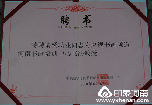 6月被聘为中央电视台书画频道河南书画培训中心书法教授。