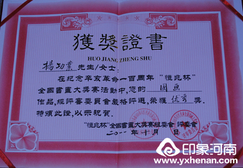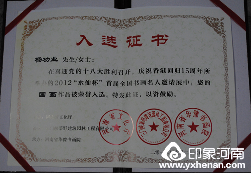 7月1日“溪山春韵”山水画获河南省第五届新农村建设书画大赛二等奖