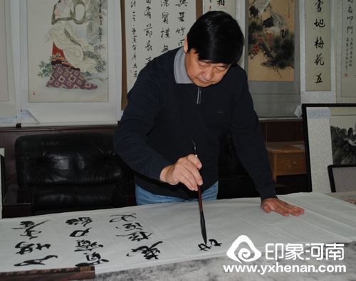 同时,为华源红木、《百年红》酒标、顺远投资、枣娃红、黑龙潭淮南茶场、金墨茶香、金墨茶易、汇美茶舍、河南喜相逢酒业题写匾牌,为央视《文化中国》、《奋斗》栏目题辞;先后为《开封民企》、《马文芳的爱心诊所》、《少林武僧保明王》、《曾经拥有》、《人到无救品自高》等书刊题写刊名;并为香港旅游电视十周年庆典题辞小八尺“视界无限”,为中国艺术家协会辽宁秘书处题辞6尺整幅“上善若水 厚德载物”等。