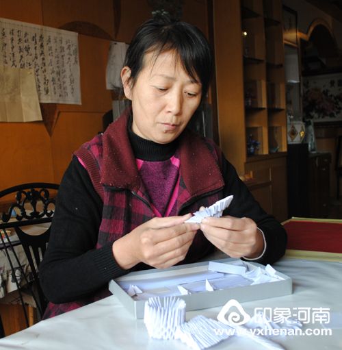 蔡建华,女,汉族,1964年7月生于河南省郑州市,现为河南省工艺美术协会会员,河南省民间文艺家协会会员,自幼跟随奶奶学习绣花、织布、剪花、手工花馍等民间工艺。从2000开始从事纸雕创作至今。获奖情况: