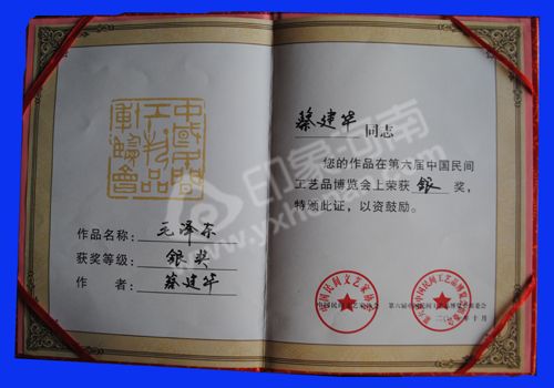 2008年元月,河南首届精品特色年货展销会,作品《年年有余》荣获金奖。