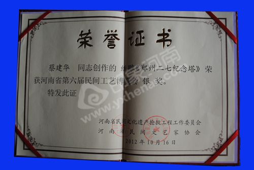 2007年元月,郑州首届民间工艺美术精品展,作品《仙鹤》获银奖。