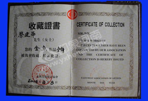 2008年8月,作品《金鱼》被东西方艺术家协会收藏。