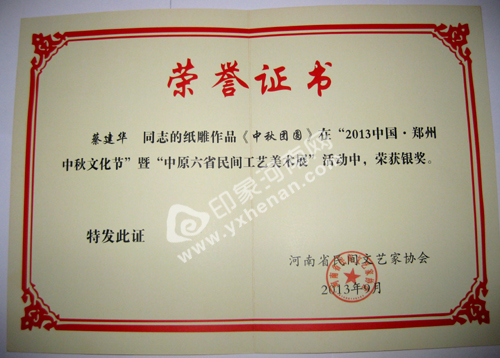 2010年9月,河南第四届残疾人职业技能竞赛中,荣获剪纸项目第五名。