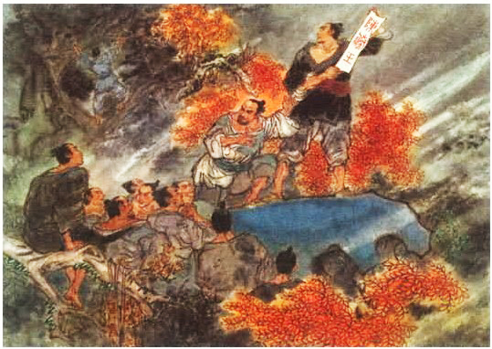 陈胜心里明白,他这是让我假借鬼神来迷惑大众,叫大家拥护。于是,陈胜用朱砂在一块白绸上写了“陈胜王”三个字,偷偷地塞进鱼肚子里面。不多久,这条鱼被部队的伙夫买回来做菜。他把鱼肚剖开,发现了有字的绸子,大惊失色,这消息立刻传开了。
