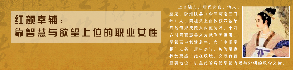 本期概述上官婉儿一生可谓传奇,其才华诗文不让须眉男子,其人品功过颇具争议。有人赞其文才,有人批其淫媚,极度推崇者有之,轻视鄙视者有之。而她与武则天长达二十七年的共处亦让后人津津乐道。 本期且看上官婉儿是如何从一个罪奴成为李唐王朝两代帝王的近侍、宠臣、秘书和妃子,声名显赫,文采飞扬,留给后世巾帼不让须眉的一代女性传奇。