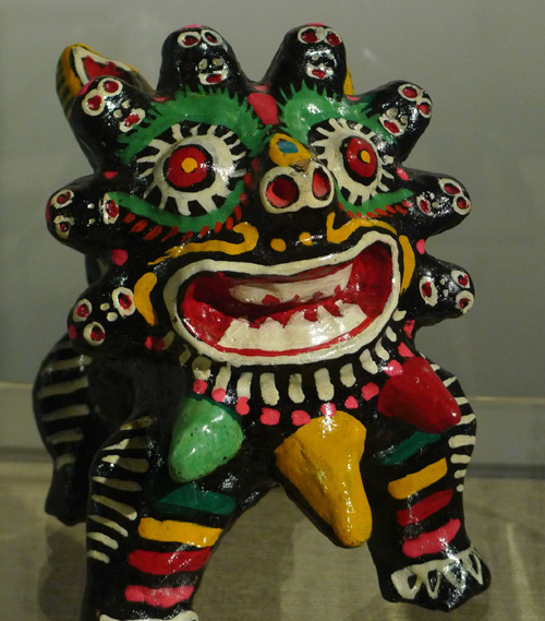 “泥泥狗”是一种黑色泥塑玩具,黑色上再施以红、黄、青、白色,色彩对比强烈,而又不失和谐。中国各地的泥玩具中白底色玩具极普遍,黑底色玩具较少。“泥泥狗”以黑为基调,再饰以红、青、黄、白,统称“五色”。红、青色艳丽,白为明色,黄则为中和色(现多用广告色、加品红),在黑色的包容中通体鲜艳夺目,具有强烈的视觉冲击效果。“五色”则源于中华民族的“五色观”,由来已久。《历代名画记》载“泊平有虞作绘”注引《蔡传》说:“彩者,青、黄、赤、白、黑色。色者,言施于...[详细]