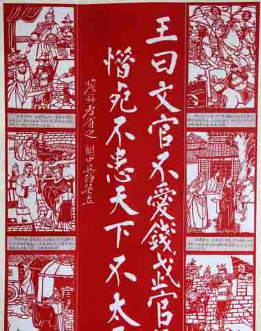 人民网安阳3月5日电 2003年汤阴县被文化部命名为“全国民间艺术之乡”。多年以来,汤阴民间艺人灵活运用传统的剪纸手法,辅以刻、镂、拼色、衬色等技艺,结合时代特点进行创作,浓郁的生活气息和时代特色呈现在作品里,传统剪纸技艺得到改进和发扬。剪纸内容丰富,题材广泛,应用遍布民间不同的时节和场合……今年元月15日,全国第二届廉政剪纸大赛上,汤阴县创作的岳飞故事“文官不爱钱,武官不惜死,不患天下不太平!”剪纸作品荣获二等奖。(尚明桢 通讯员 魏筠)(原标题:岳飞故乡的剪纸艺术)